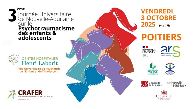Le vendredi 3 octobre dernier, le Pr Ludovic Gicquel – Chef du pôle universitaire de psychiatrie de l’enfant et de l’adolescent et les équipes du Centre régional du psychotraumatisme infanto-juvénile Nord Nouvelle-Aquitaine du Centre Hospitalier Laborit ont eu le plaisir d’organiser, à Poitiers sur le site du Futuroscope la 3ᵉ journée universitaire de Nouvelle-Aquitaine dédiée au psychotraumatisme de l’enfant et de l’adolescent, succédant ainsi à l’édition 2024 portée par le CH de Bordeaux.