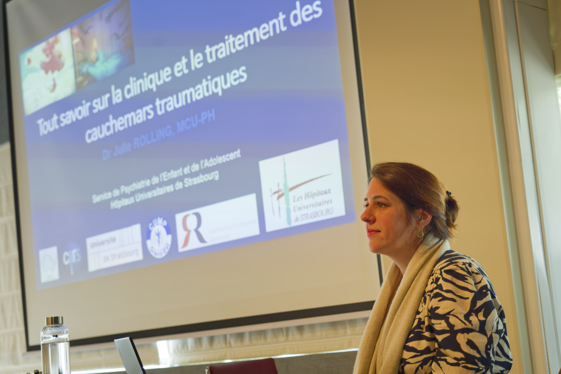 La Dre Julie Rolling est MCU PH en psychiatrie de l’enfant et de l’adolescent au CHRU de Strasbourg, a présenté la Rêverie Intersubjective Métaphorique (RIM) comme levier thérapeutique pour accompagner les adolescents souffrant de cauchemars traumatiques.