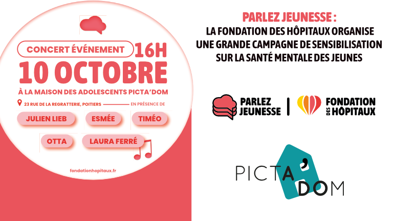 Concert évènement de la Fondation des Hôpitaux 📅 Le 10 octobre, retrouvez les équipes de la Fondation et de la Maison des Ados à Poitiers pour l'évènement #ParlezJeunesse ! Rendez-vous le 10 octobre à 15h, devant Picta'Dom & Picta’Bus - Maison des Adolescents et des Jeunes Adultes du 86, pour une expérience unique : [...]
