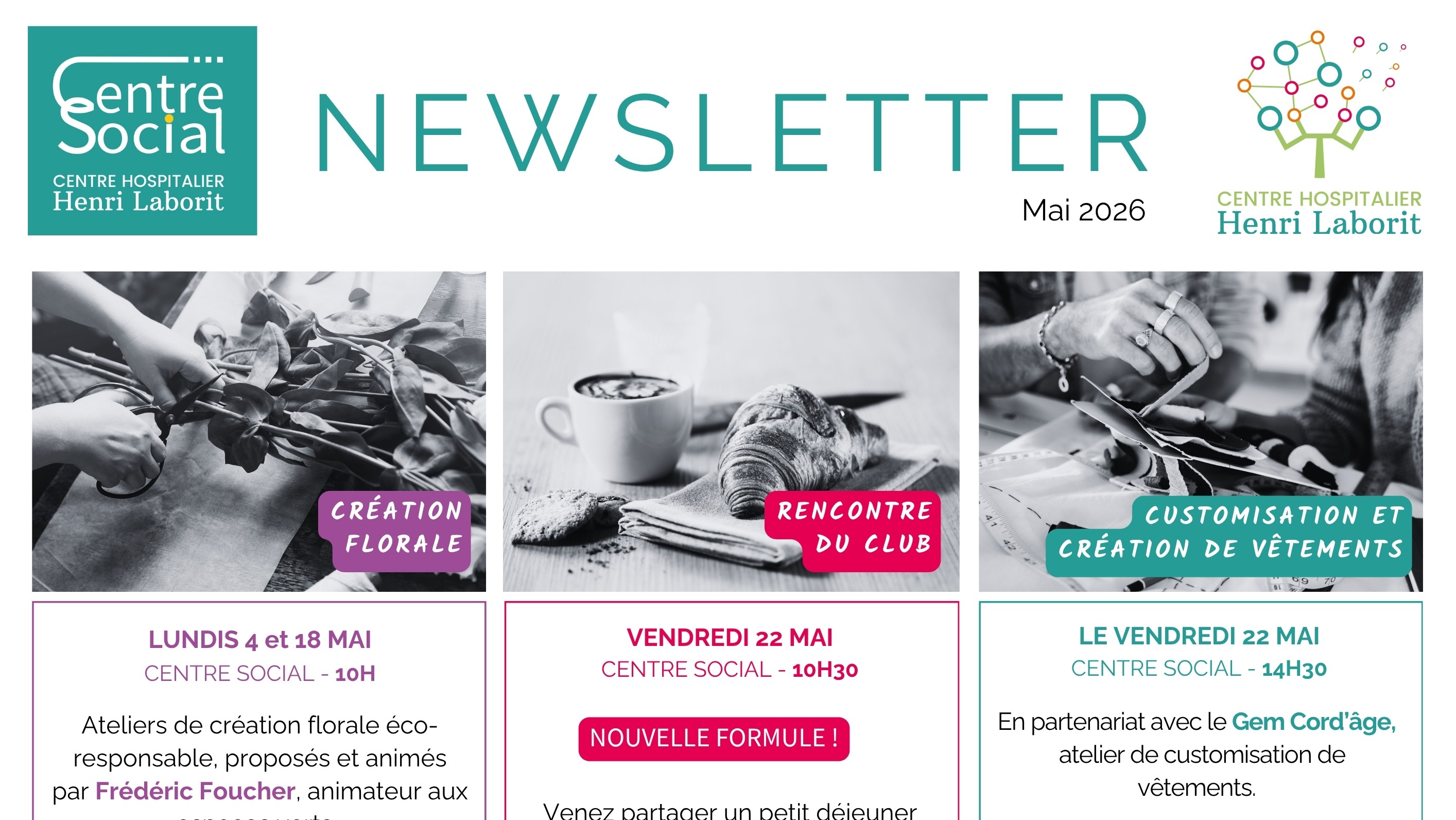 Découvrez le programme du mois de mai dans la nouvelle Newsletter du Centre social. Ces temps sont ouverts à toutes et tous et s’inscrivent dans une démarche de lien social, de créativité et de convivialité. Venez partager de beaux moments avec nous et n'oubliez pas de réserver vos places pour les ateliers. [...]