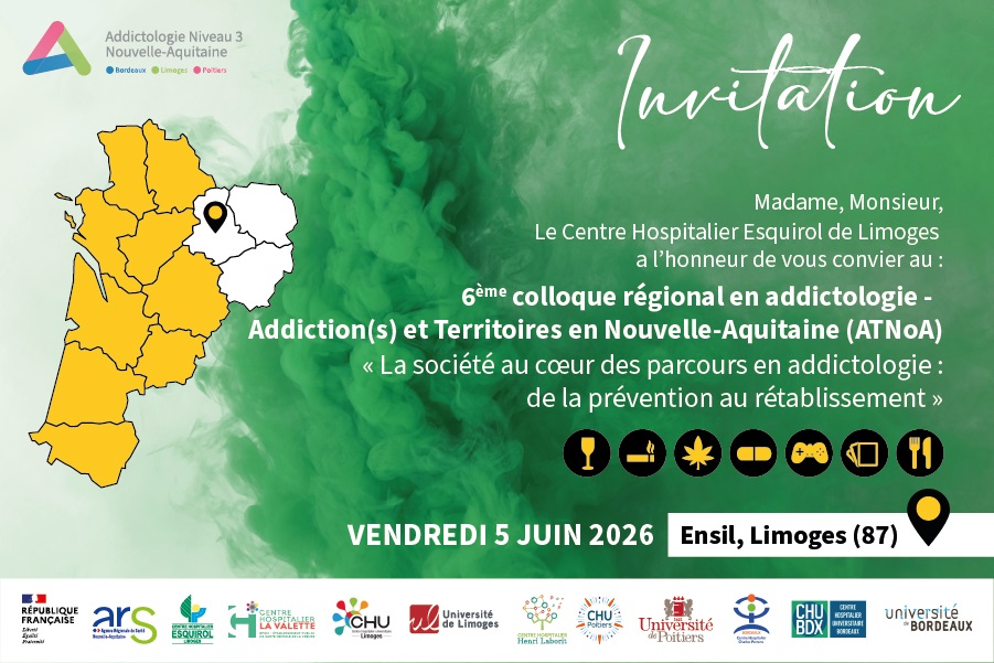 6ème colloque régional - La société au cœur des parcours en addictologie : de la prévention au rétablissement Vendredi 5 juin 2026 - ENSIL - Limoges > Voir le pré-programme > Inscription