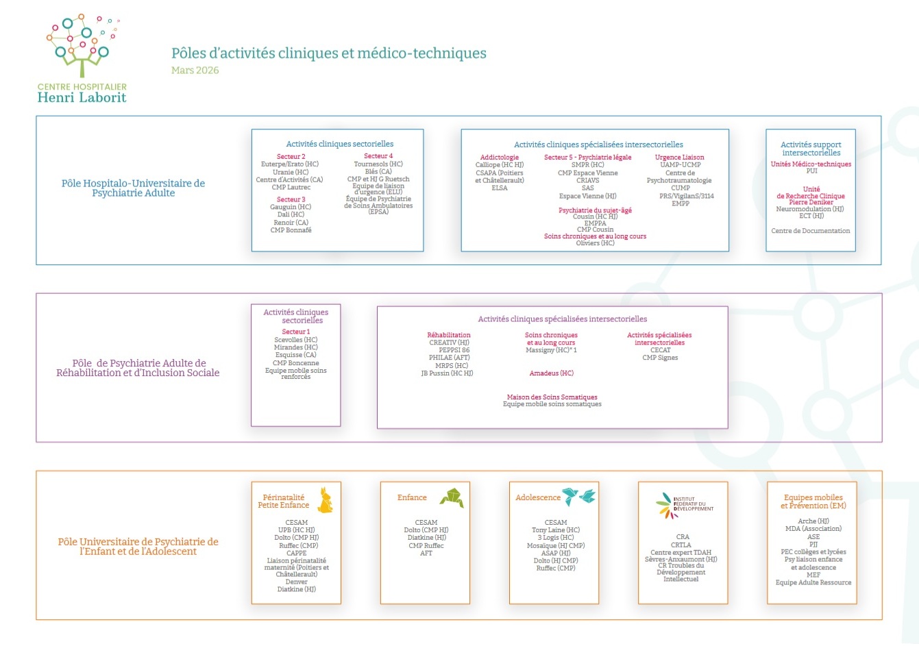 • 288 lits d’hospitalisation à temps complet pour les adultes et 26 pour les adolescents