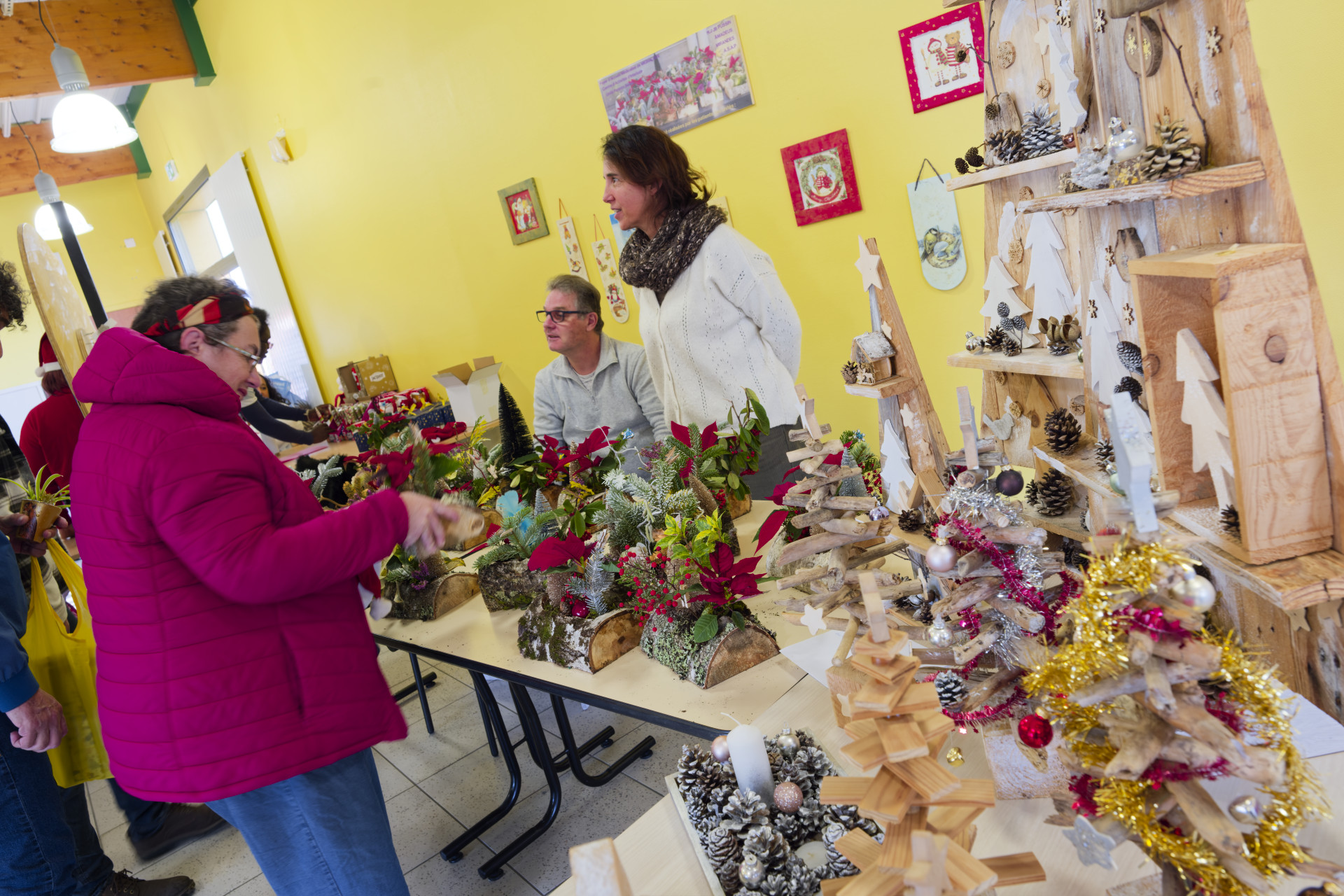 Parmi les réalisations présentées figuraient notamment les bûches décoratives, confectionnées lors des ateliers proposés aux usagers et animés par Frédéric Foucher, membre des espaces verts du CH Laborit et récemment diplômé en animation.